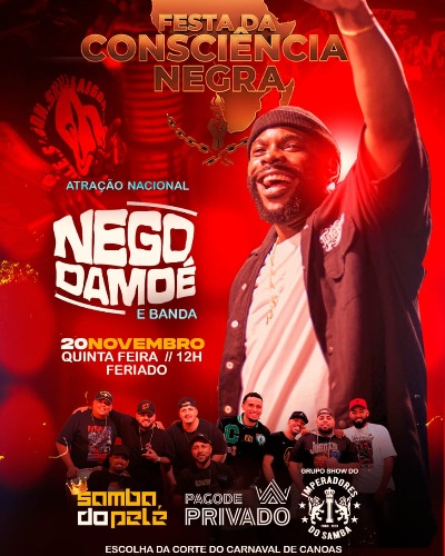 FESTA DA CONSCIÊNCIA NEGRA ESCOLHA DA CORTE CARNAVAL DE CANOAS SHOW NACIONAL NEGO DAMOÉ E BANDA