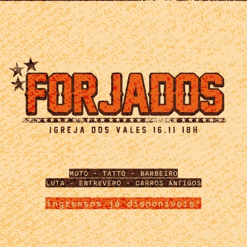 Prepare-se para uma noite inesquecível! Chegou o evento que você estava esperando: Forjados para Homens. Garanta o seu ingresso e aproveite uma experiência única e cheia de atrações que vão acelerar o coração!