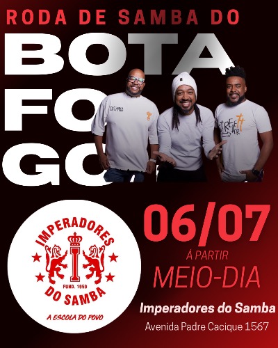 Contamos com a sua presença e com sua energia para sambar e bater na palma da mão..